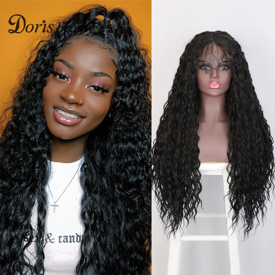 Doris beauty Synthetic Lace Front Wigs Black Long with Baby Hair Curly Wig Natural Loose Wigs for B