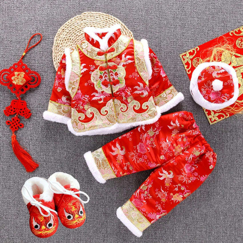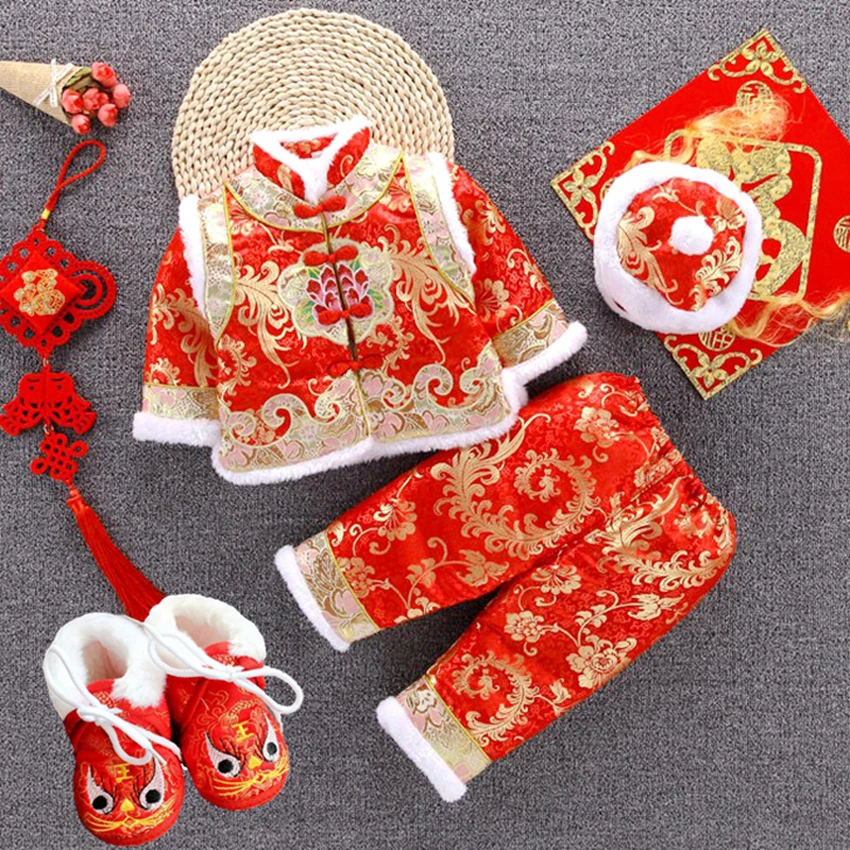 Best Quality Newborn Baby Tang Suit Chinese Traditional Costume New Year Party Infants Clothing Winter Embroider