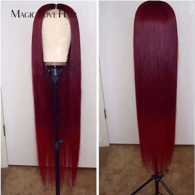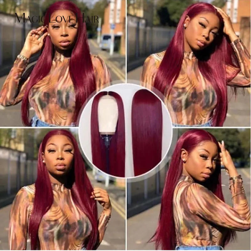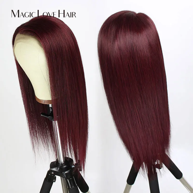 Magic Love 13x6 Lace Front Human Hair Wigs Pre Plucked With Baby Hair Brazilian Straight 99J Wigs F
